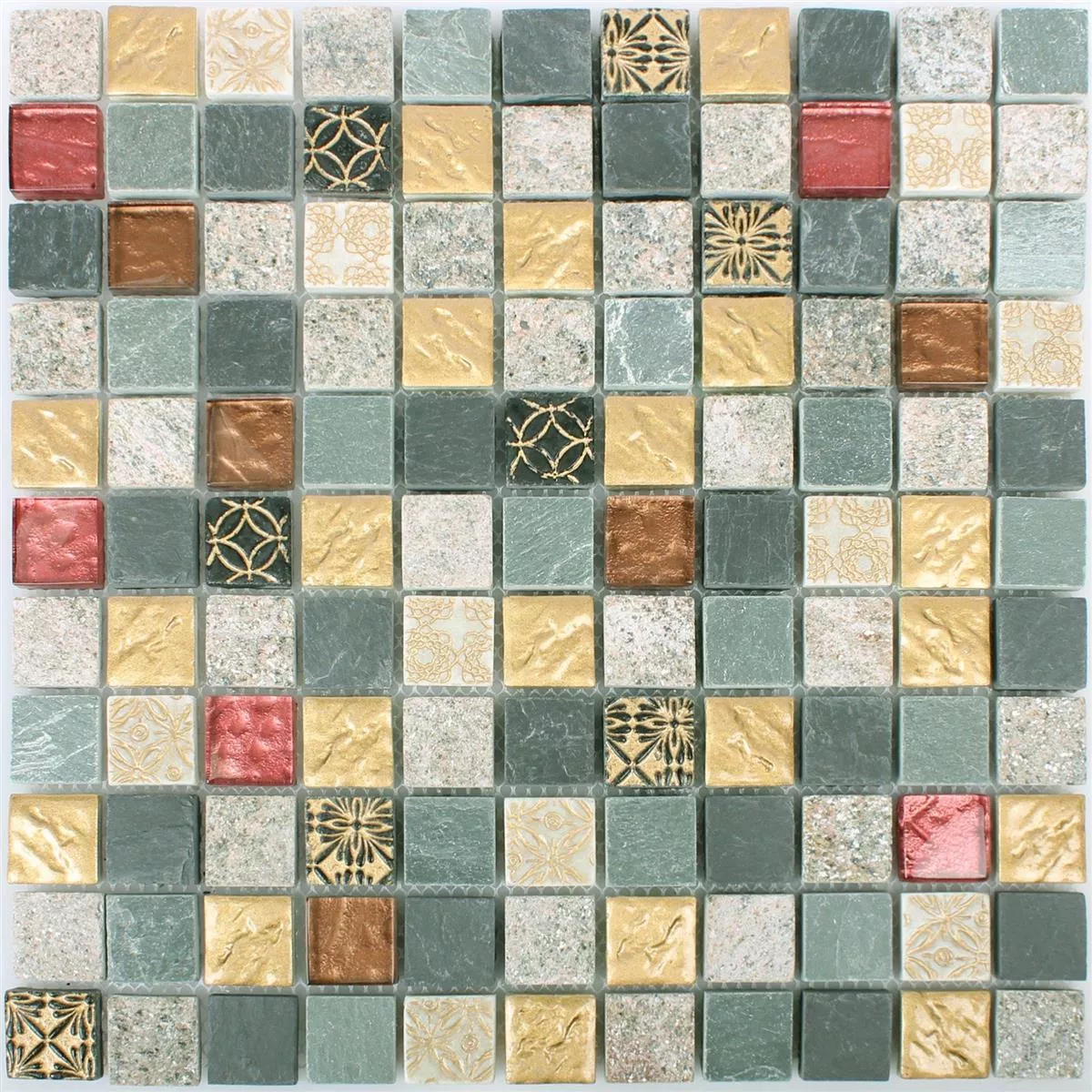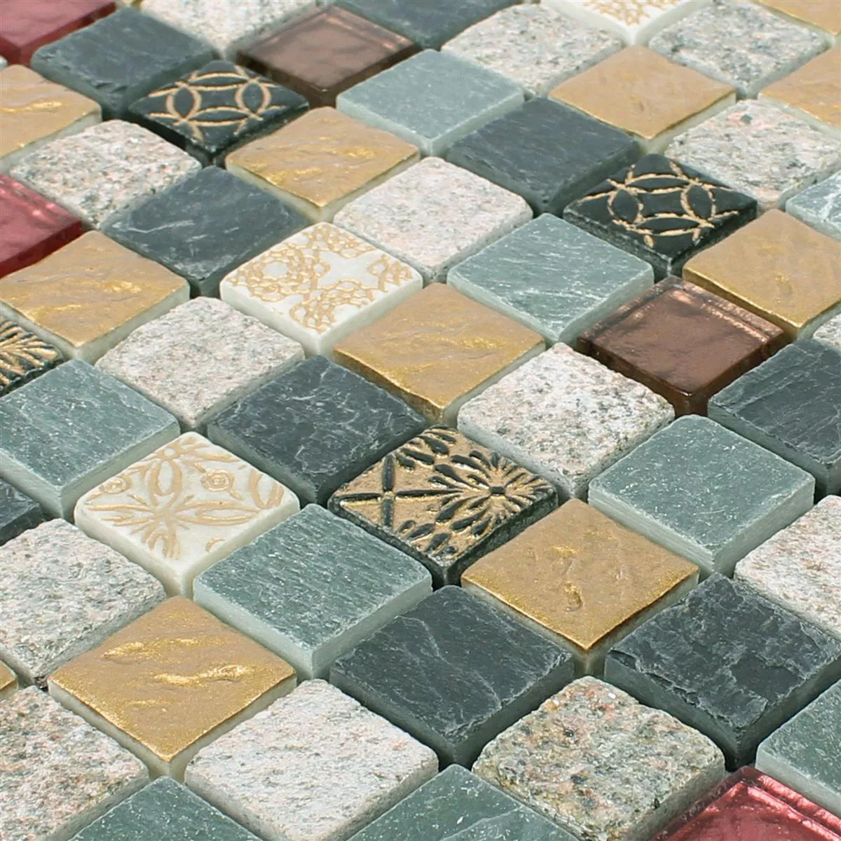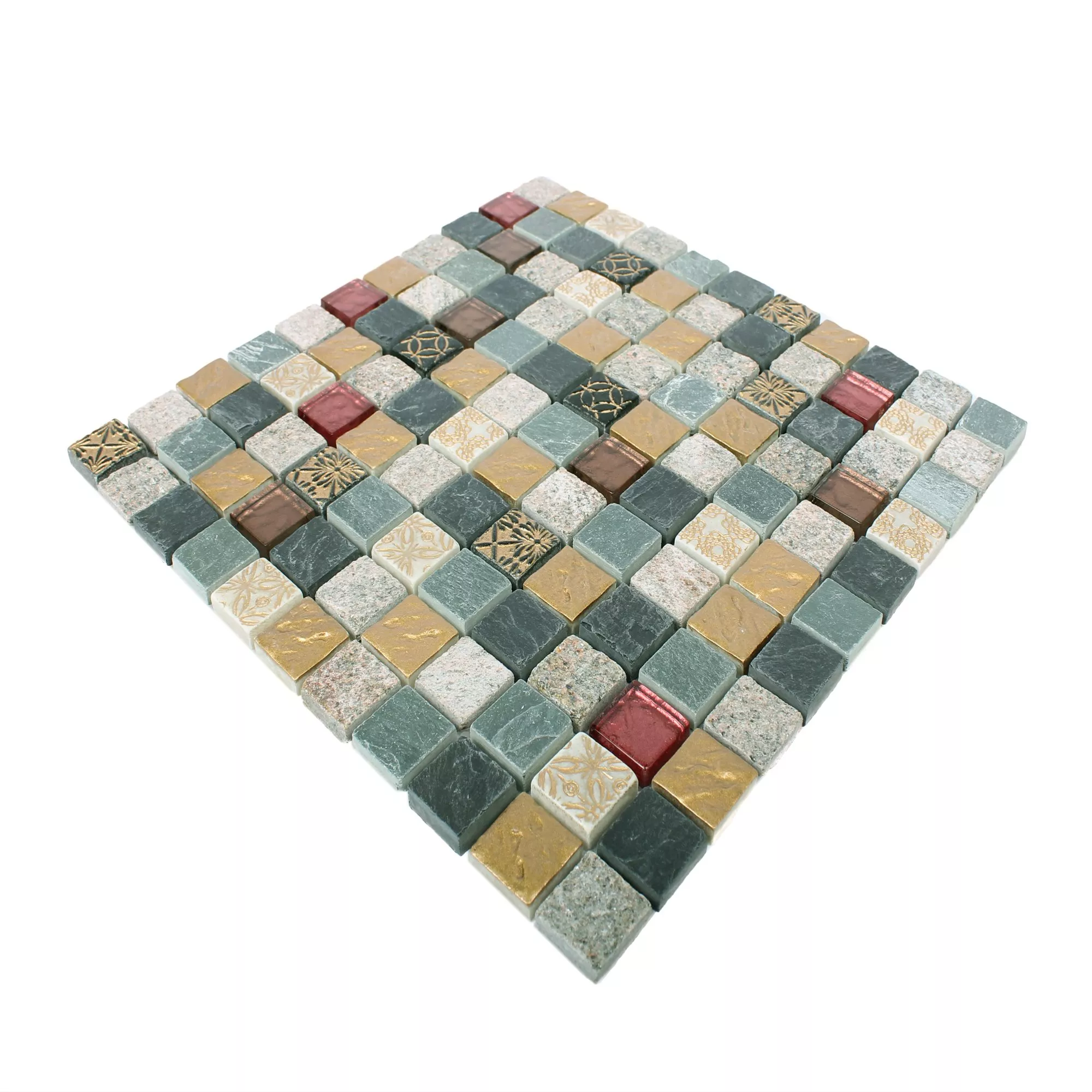 Prøve Mosaikfliser Glas Natursten Mix Sulluna Guld Gra