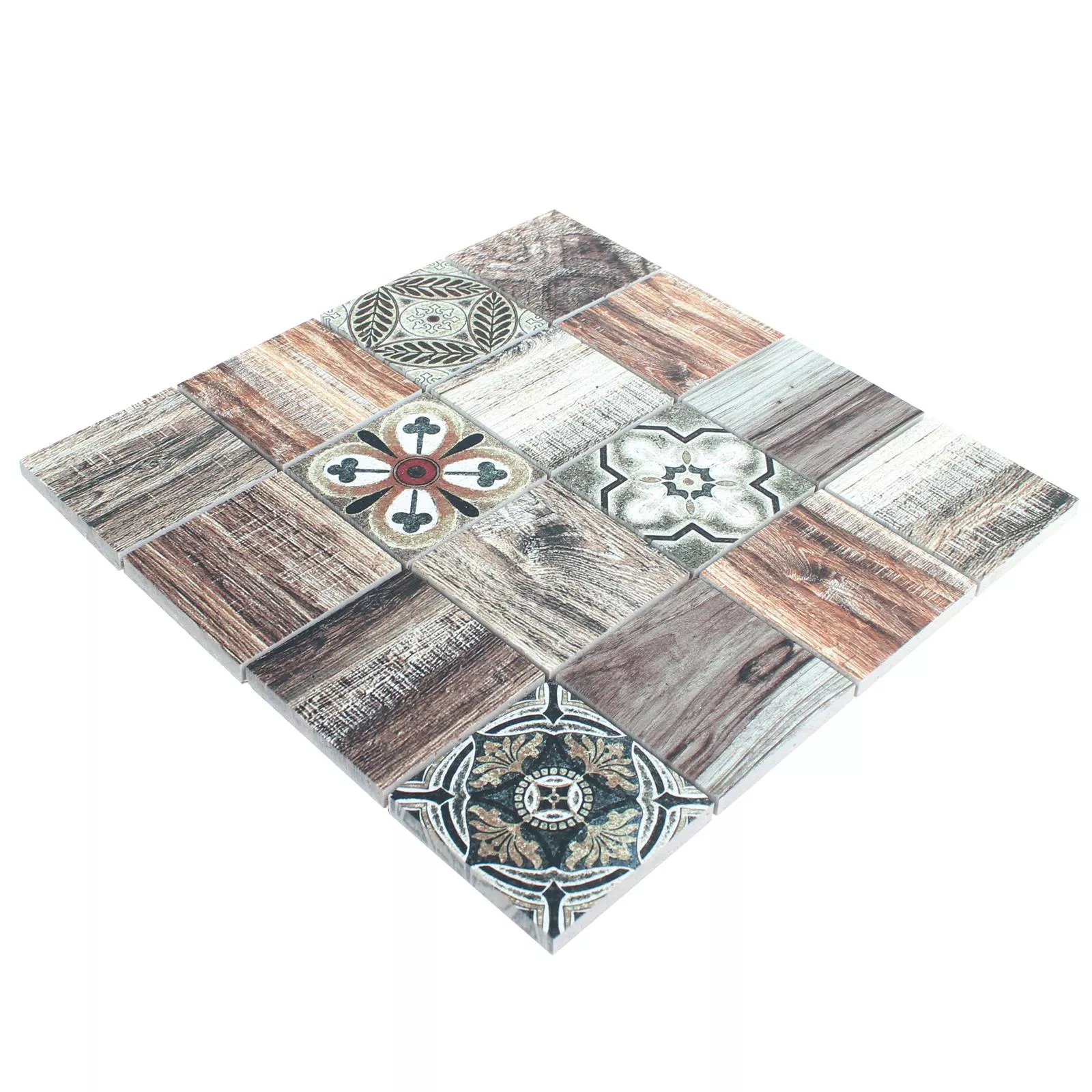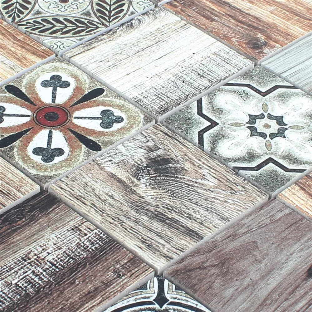 Prøve Natursten Mosaik Fliser Parion Imiteret Træ Morkbrun