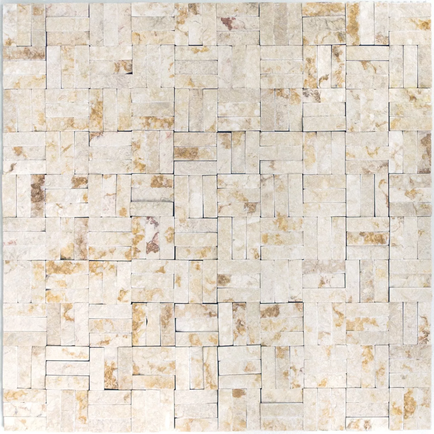 Prøve Natursten Mosaik Fliser Parkett Splitface 3D Beige Skifer