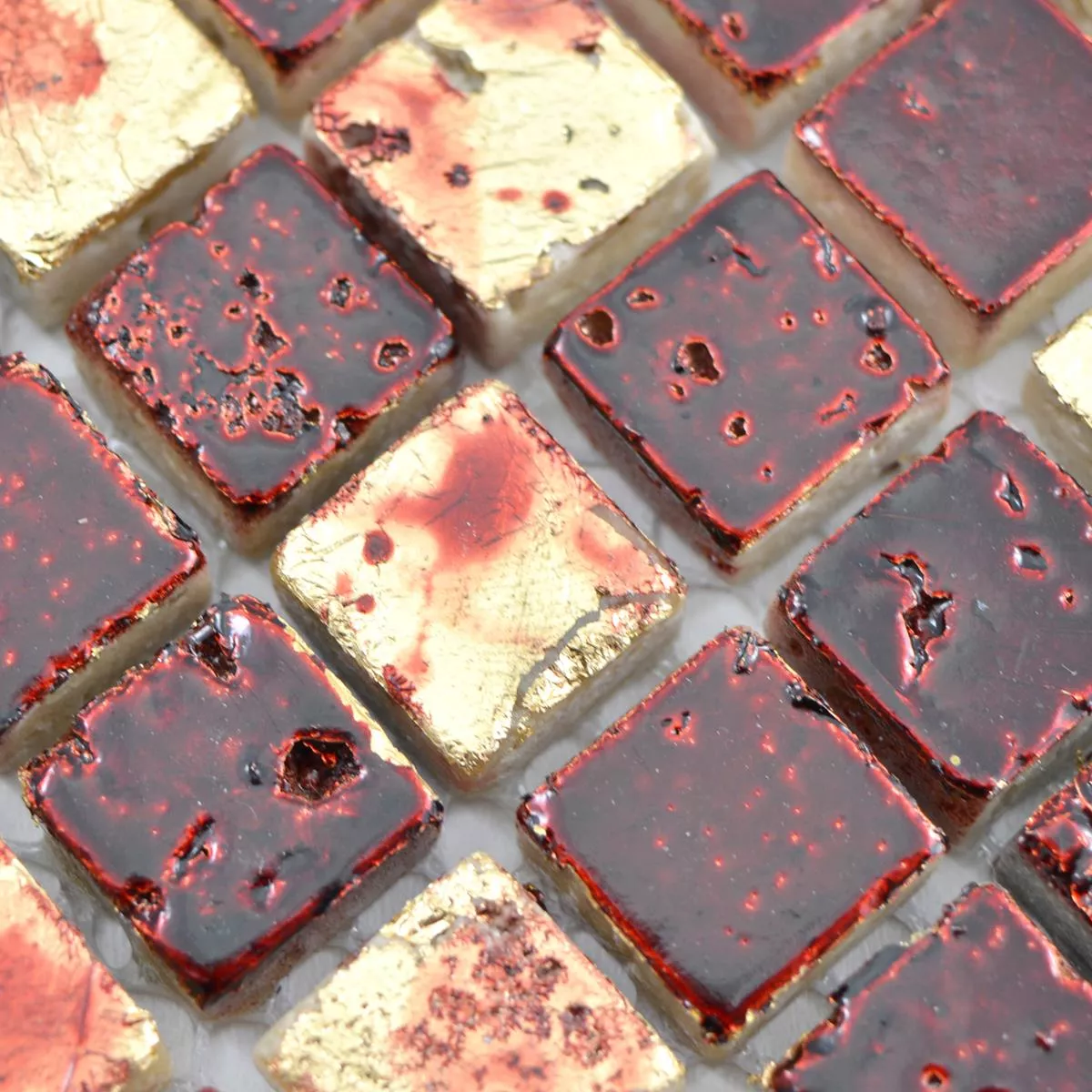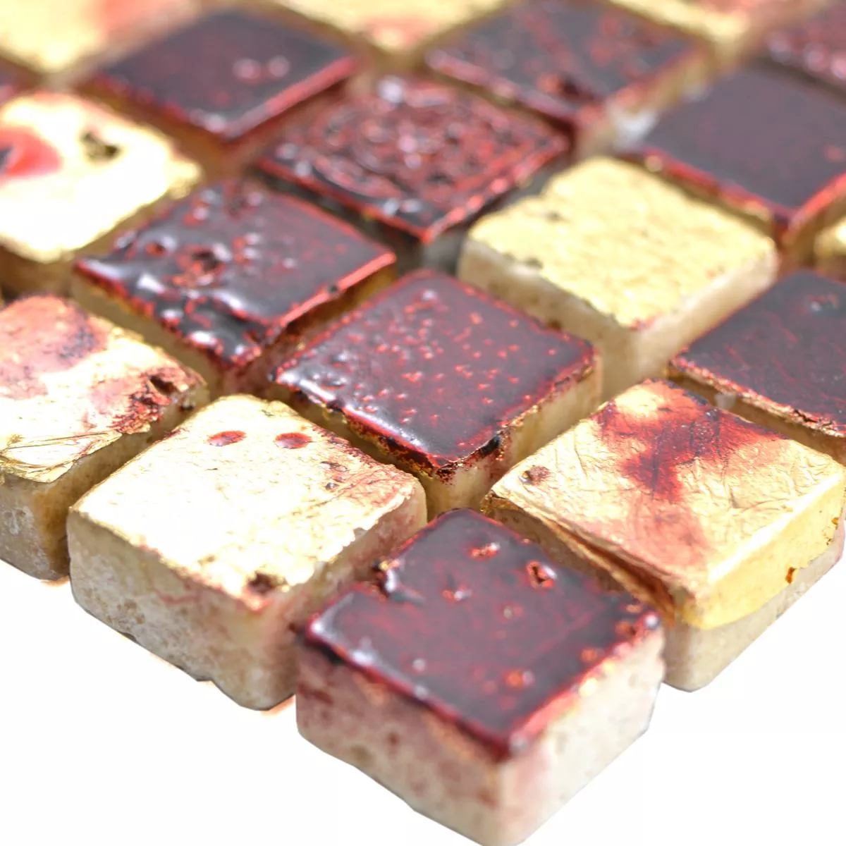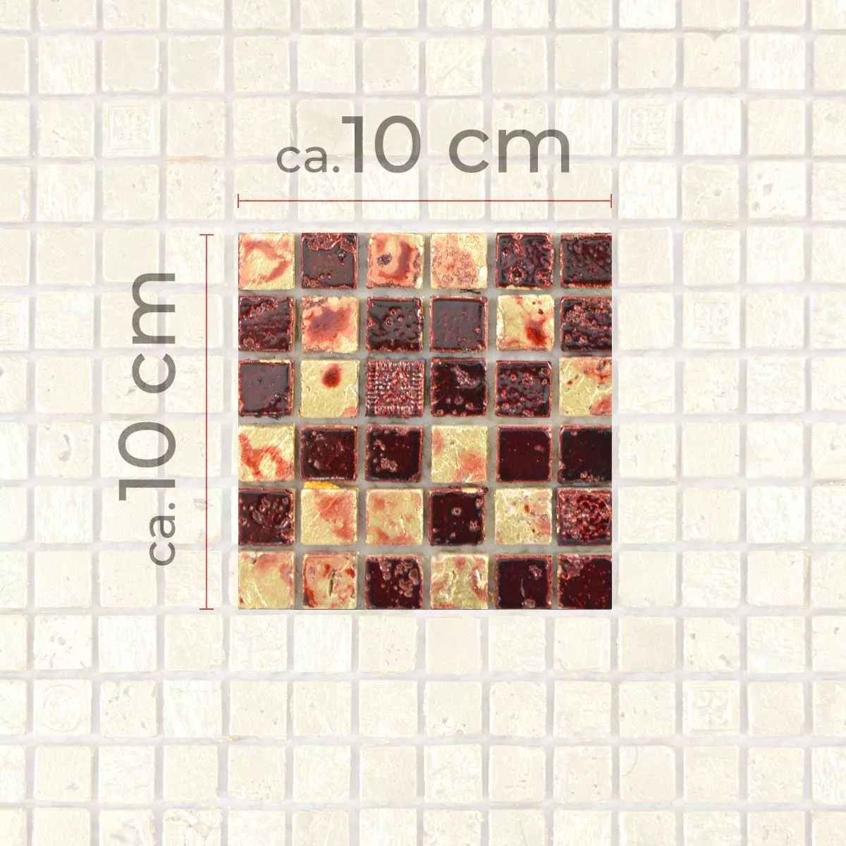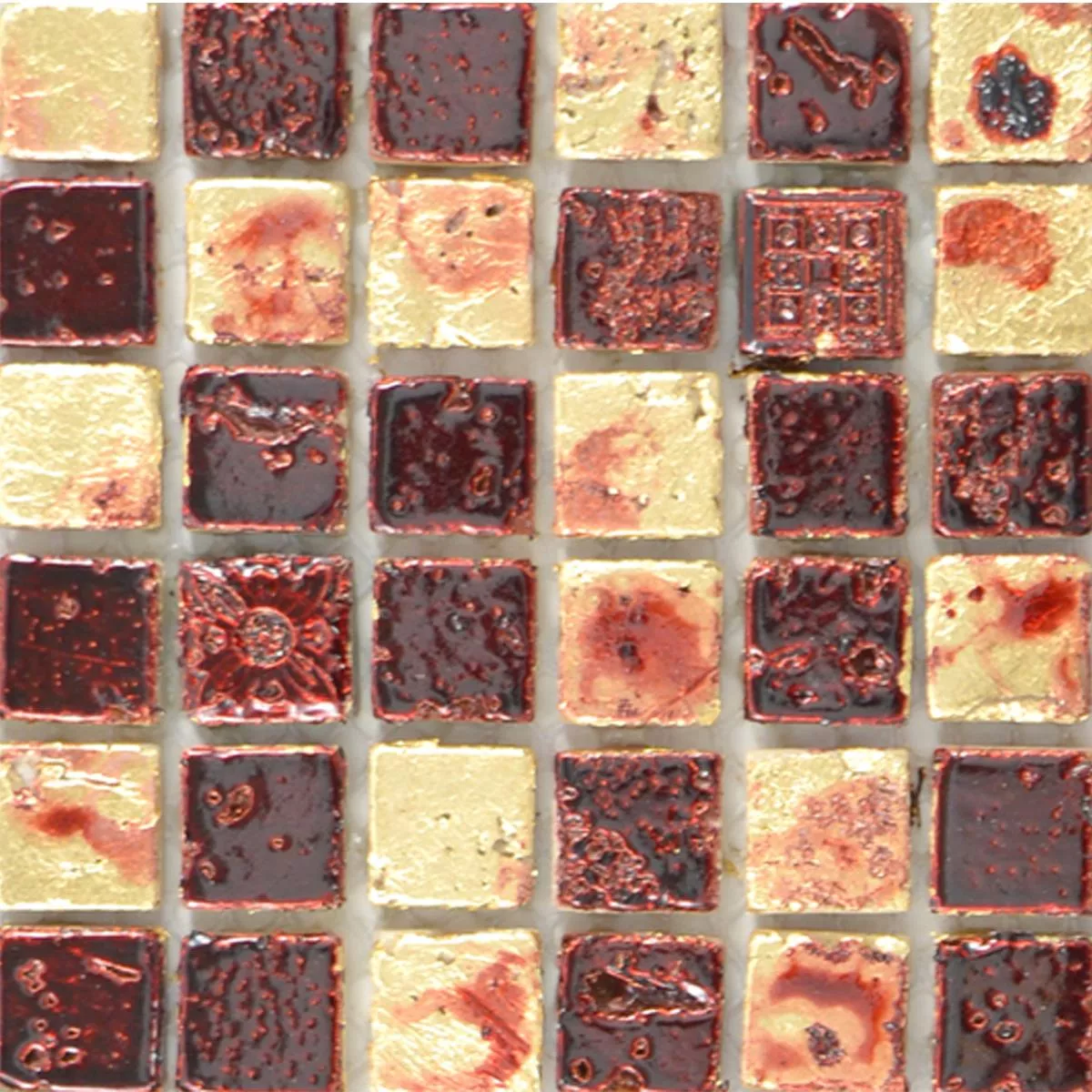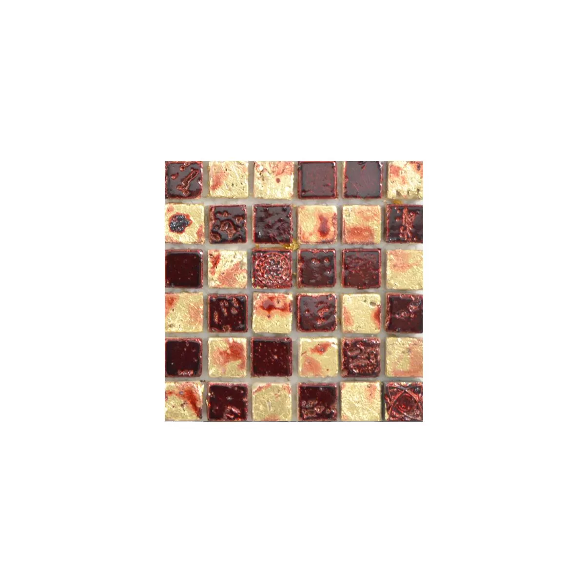 Prøve Natursten Resin Mosaik Fliser Lucky Guld Rød
