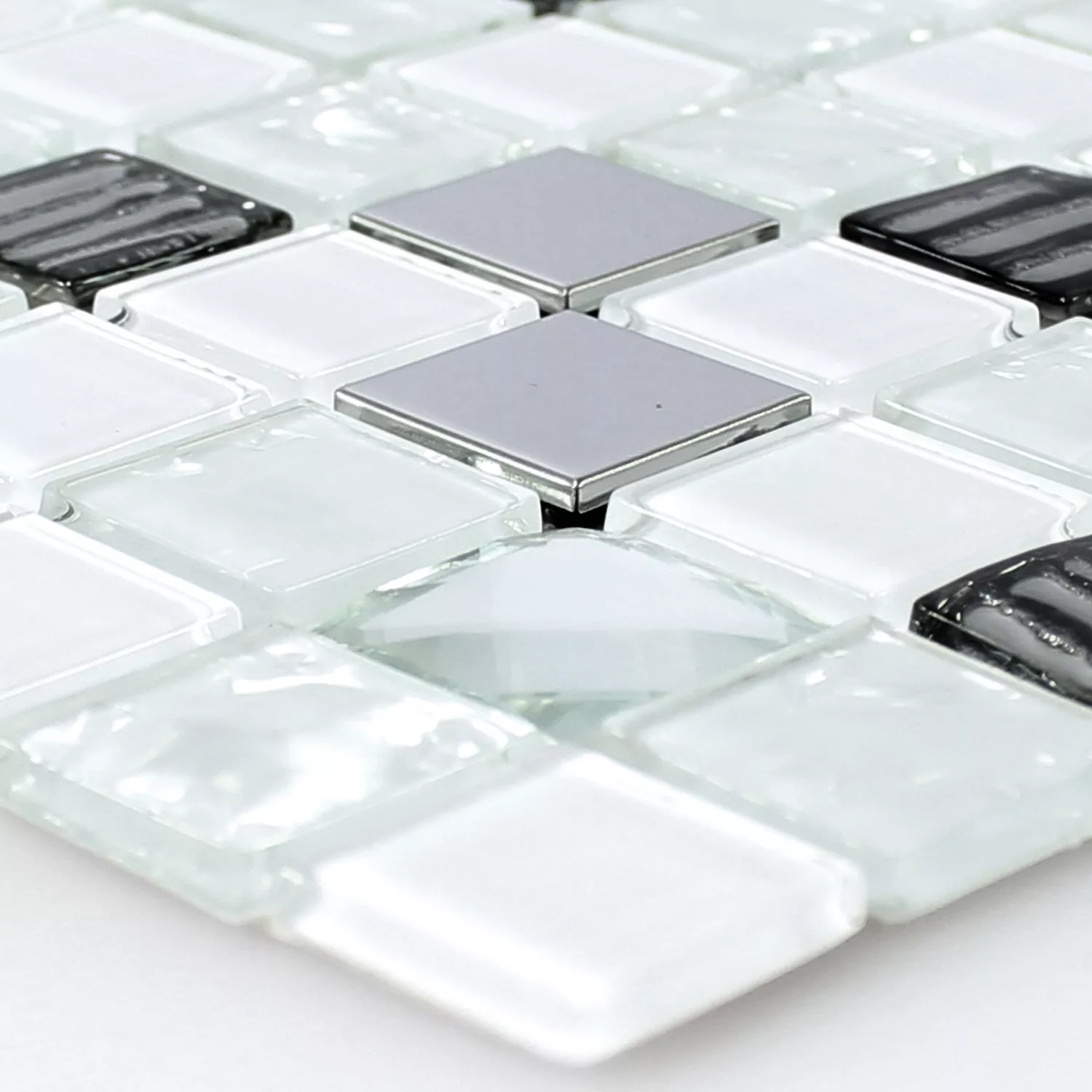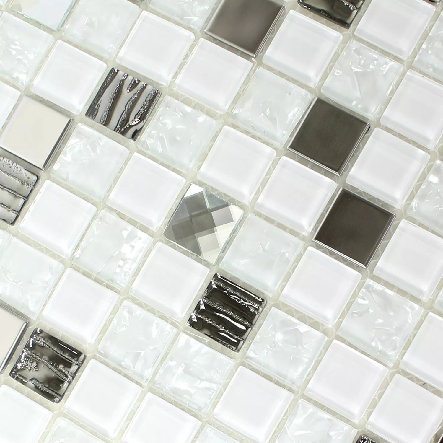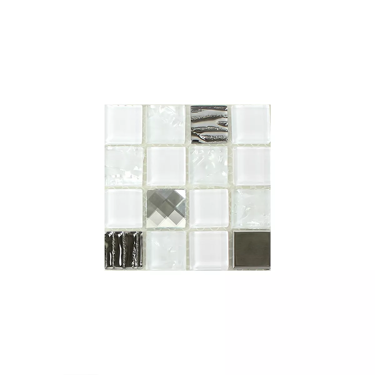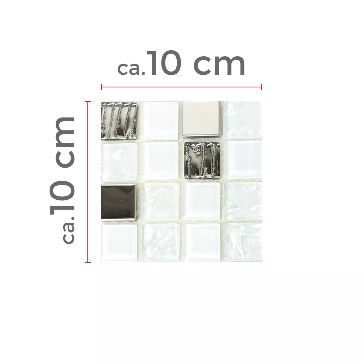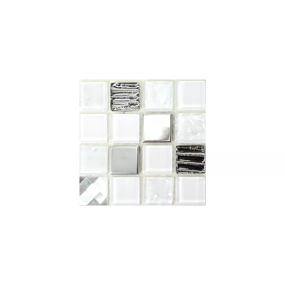 Prøve Selvklæbende Glas Rustfrit Stål Mosaik Hvid Sølv
