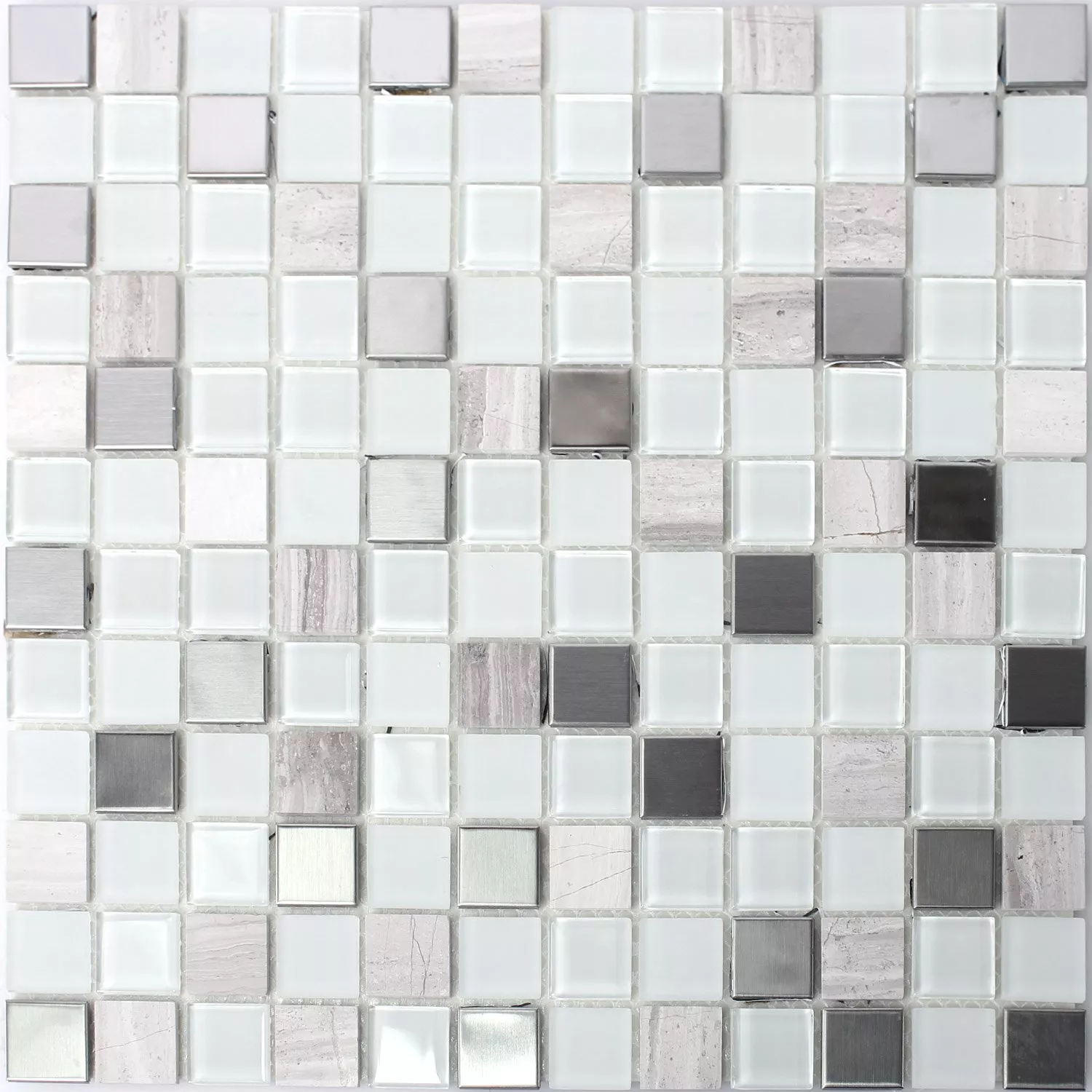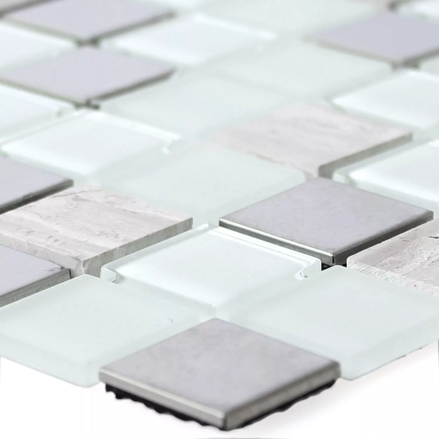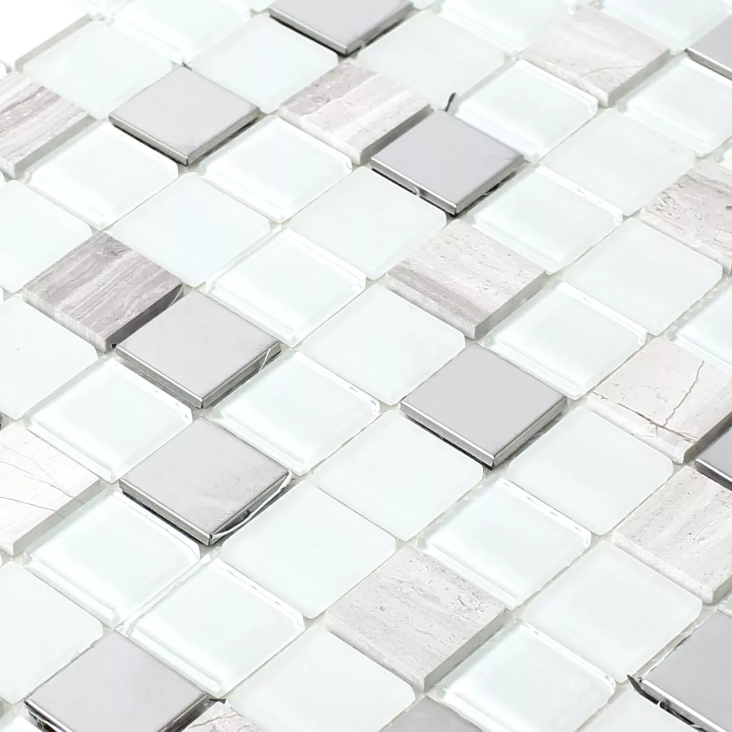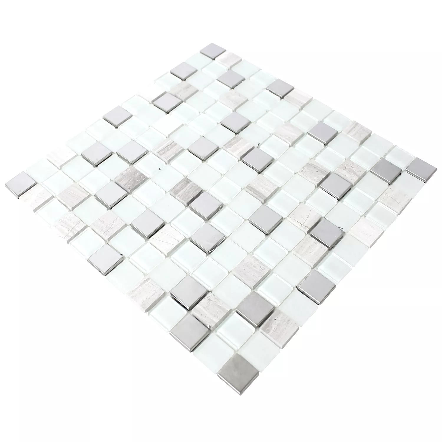 Prøve Selvklæbende Metal Mosaik Fliser Glas Hvid