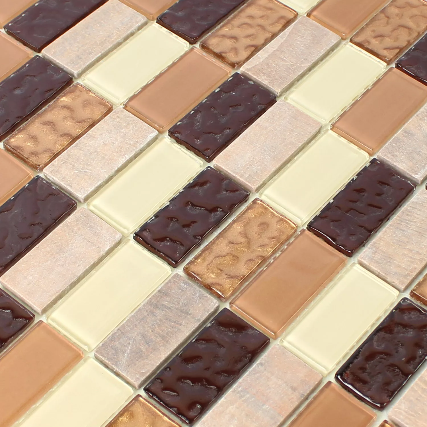 Prøve Selvklæbende Natursten Glasmosaik Beige Skifer Brun Brick
