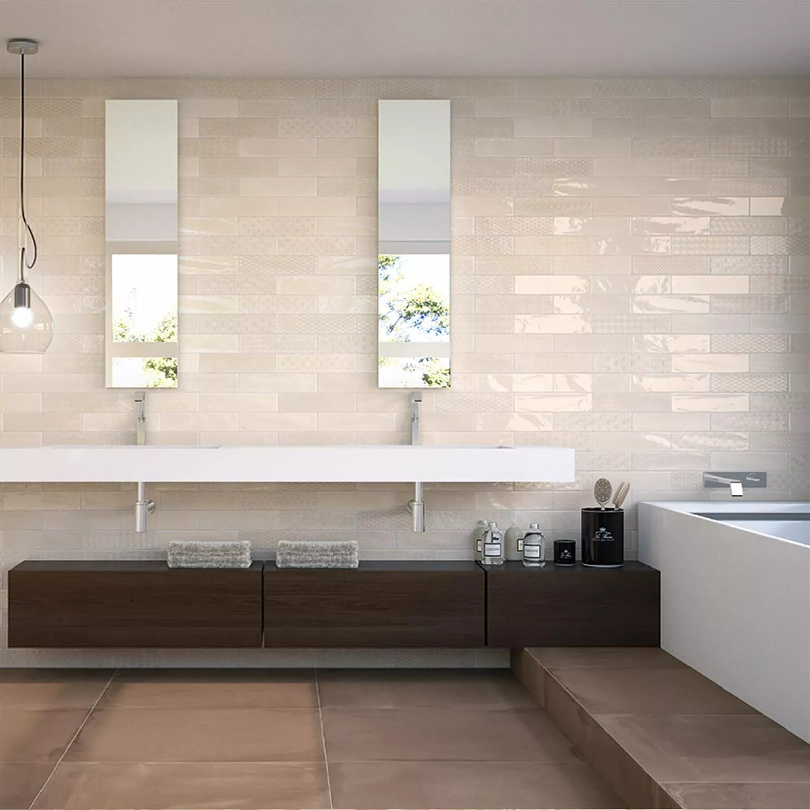 Prøve Vægfliser Conway Bølgepap 7,5x30cm Beige