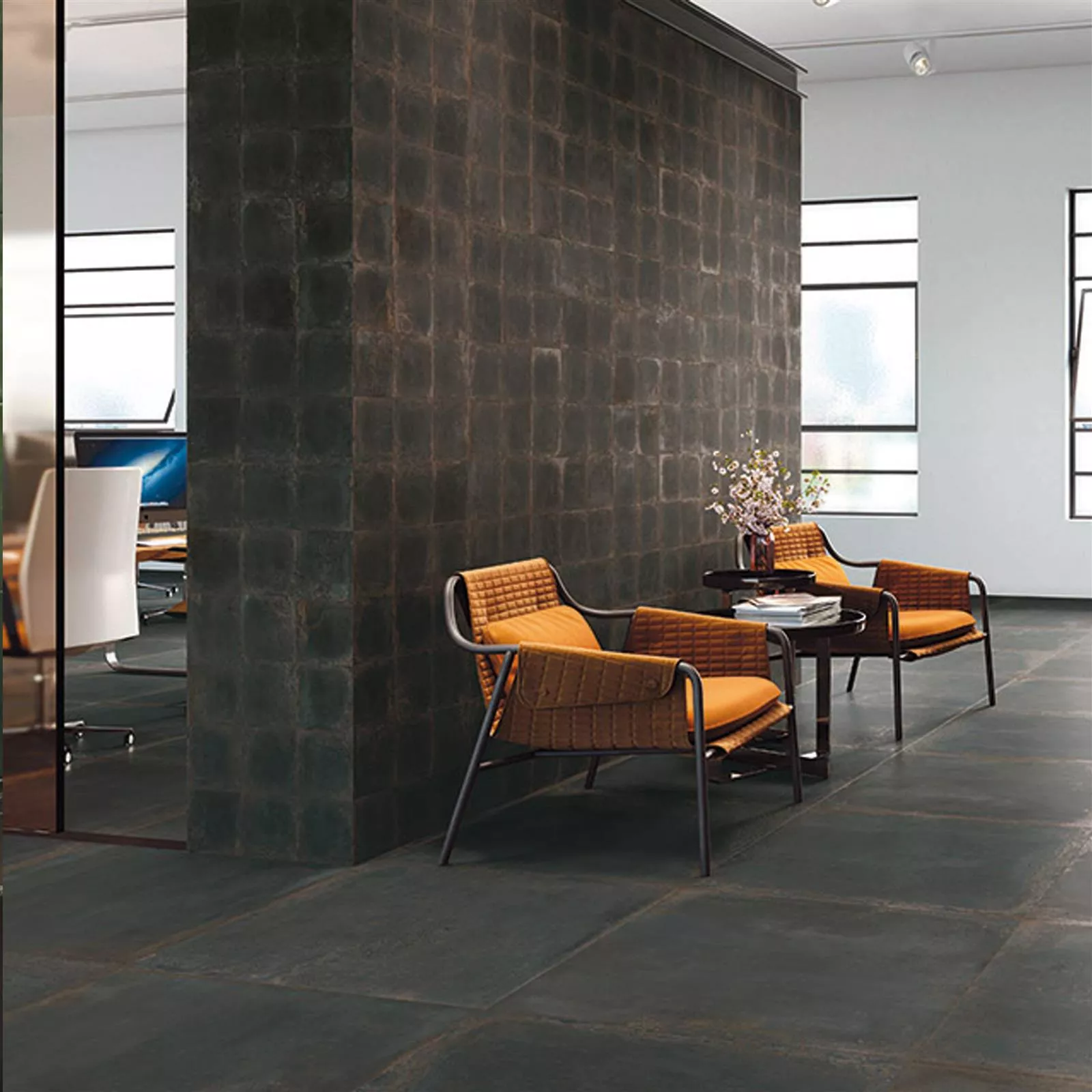 - Glaserede fliser får deres karakteristiske overfladeudseende gennem en glasur, hvor der påføres et glasagtigt lag.