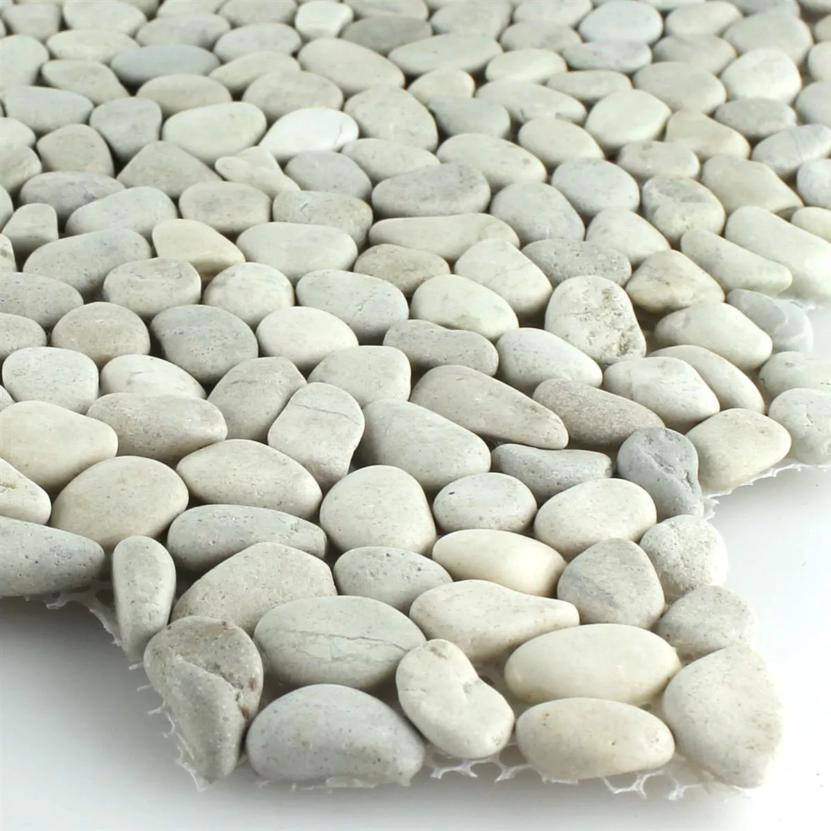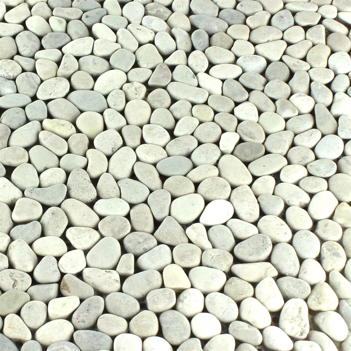 River pebble natursten mosaik fliser Micro i beige inspirerer som et naturprodukt med deres struktur, design og farve. De er velegnede til lægning i udendørsarealer, stuer og fugtige områder. Mikrofliserne med variable stenstørrelser kan sættes sammen til en mosaik, der giver omgivelserne en særlig atmosfære. Med fliserne lavet af naturmateriale kan der skabes et dekorativt blikfang.