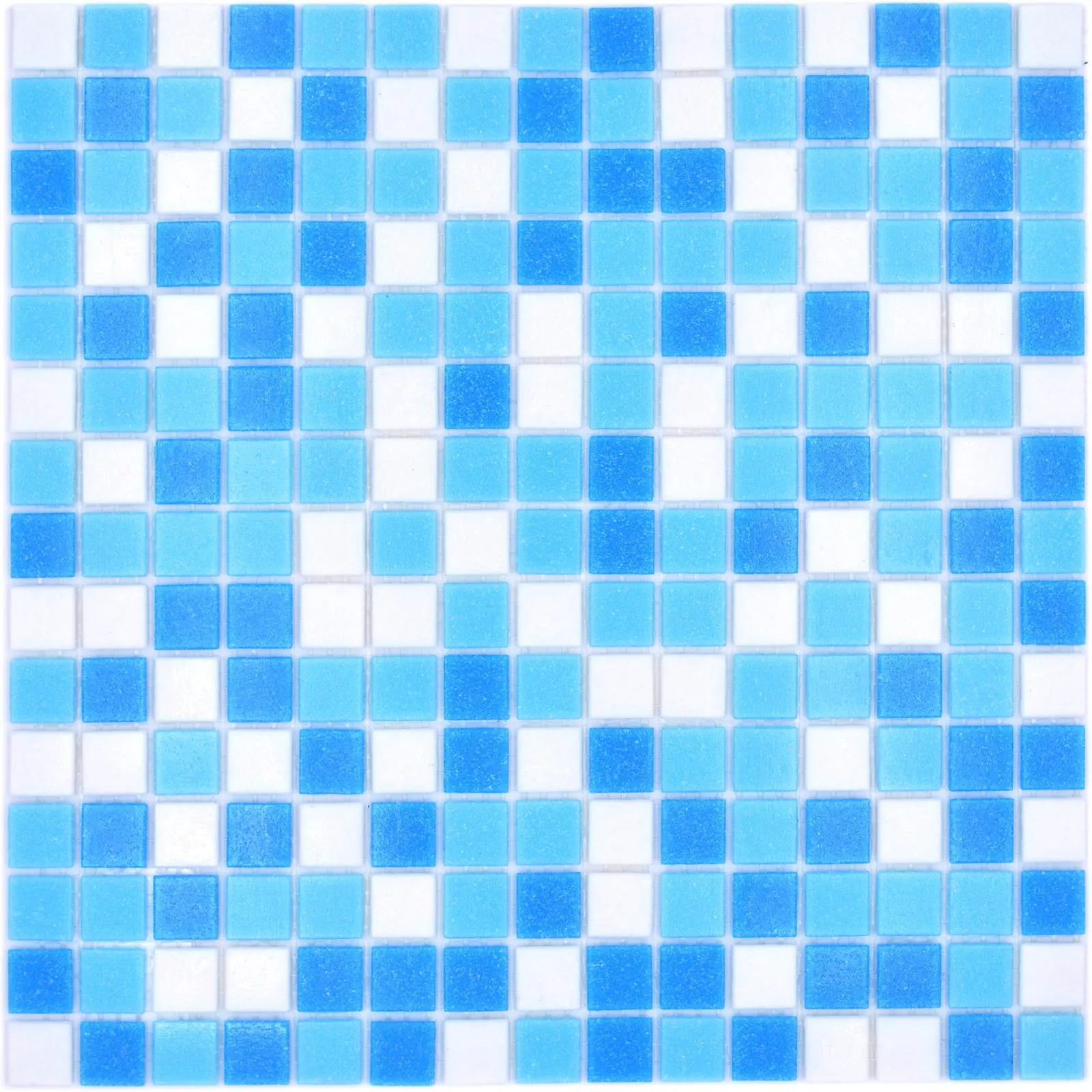 Mosaikfliser til indendørs eller udendørs pool. Papirlimning gør skæringen lettere for håndværkeren. De kan rengøres hurtigt ved hjælp af glasoverfladen.