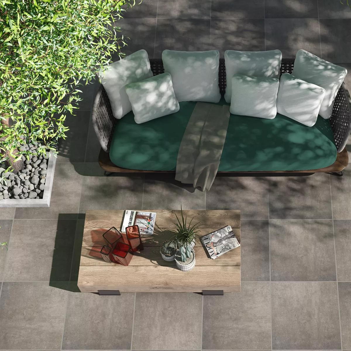 Panelernes matte overflade formidler et elegant naturstenslook, som giver dit værelse eller udendørsområde et stilrent og naturligt udtryk. Takket være porcelænsstentøjsmaterialet har pladerne høj slidstyrke (slid 4) og er frostbestandige, hvilket gør dem ideelle til brug på terrasser, altaner og gangbroer.
