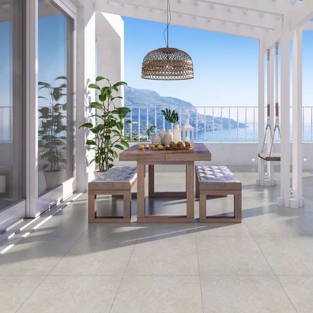 Osborne terrassefliser af stentøj i porcelæn i farven beige tilbyder en stilfuld og funktionel løsning til forskellige anvendelsesområder. Disse højkvalitets gulvfliser er ideelle til terrasser, altaner og gangbroer og giver ethvert rum et moderne og tidløst udtryk.