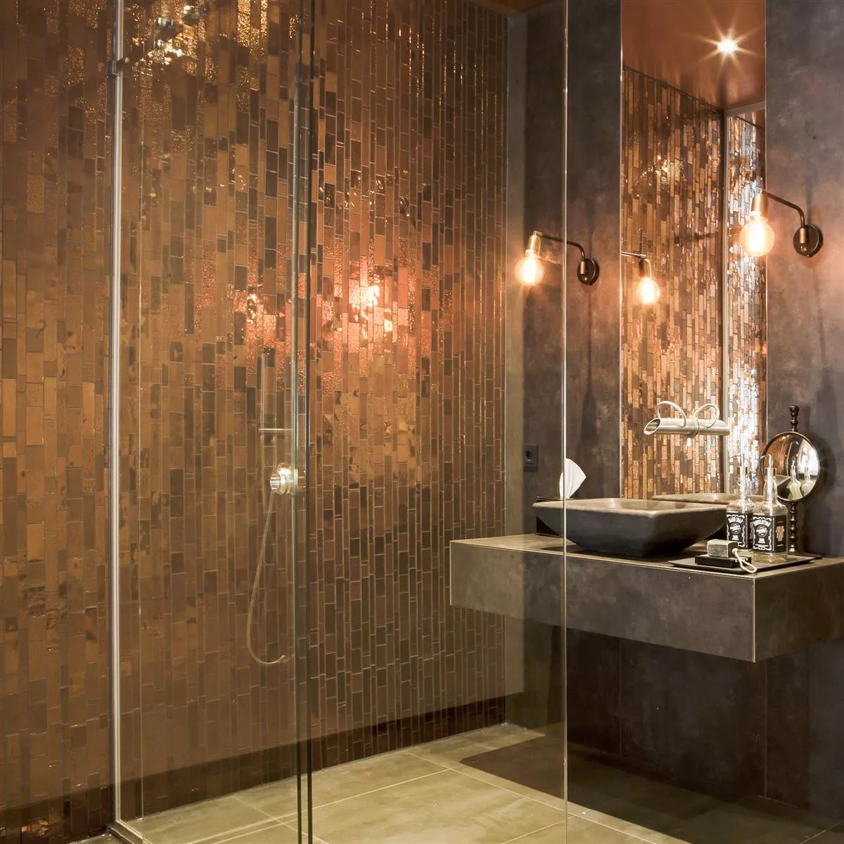 Hvis du værdsætter individuel stil, materialer af høj kvalitet og et trendy look, når du skal indrette en stue, bør du lære glasmosaikfliserne Metropolis i Amber at kende. Denne glasmosaikflise er lavet af den berømte og berømte italienske producent af glaskeramik, Trend-Vi-firmaet. Gulve der er blevet udstyret med glasmosaik har et særligt elegant udseende, men er lige så lette at vedligeholde og spændstige som andre klinkegulve Mosaikfliserne fås som pinde med en tykkelse på 4 mm, måttestørrelsen er 30,8x28. 8 cm.