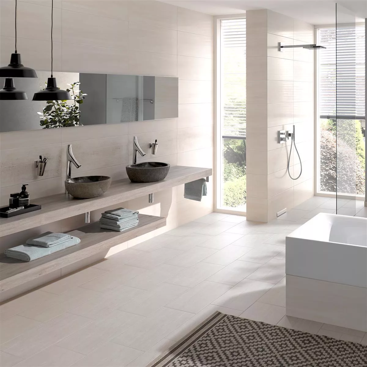 Anderson naturlige kant matte vægflise fås i hvid og beige. Basisflisen har en mat såvel som en blank overflade, fuldindretningsvarianten er derimod mat og den er glaseret, så den får et ekstra toplag og er derfor lidt tykkere end normalvarianten.
