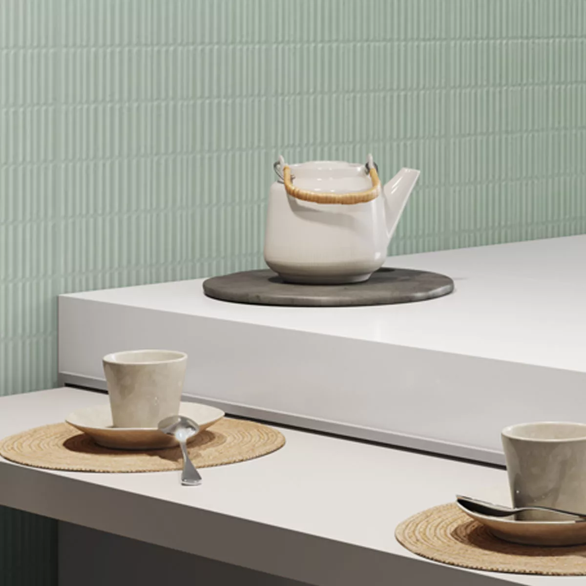 Det særlige ved disse fliser ligger i reliefdesignet, som tilføjer en subtil tekstur til ethvert rum og sikrer en unik visuel oplevelse. Den glaserede overflade reflekterer lyset og giver fliserne en levende glans, der lysner og forstørrer dine rum.