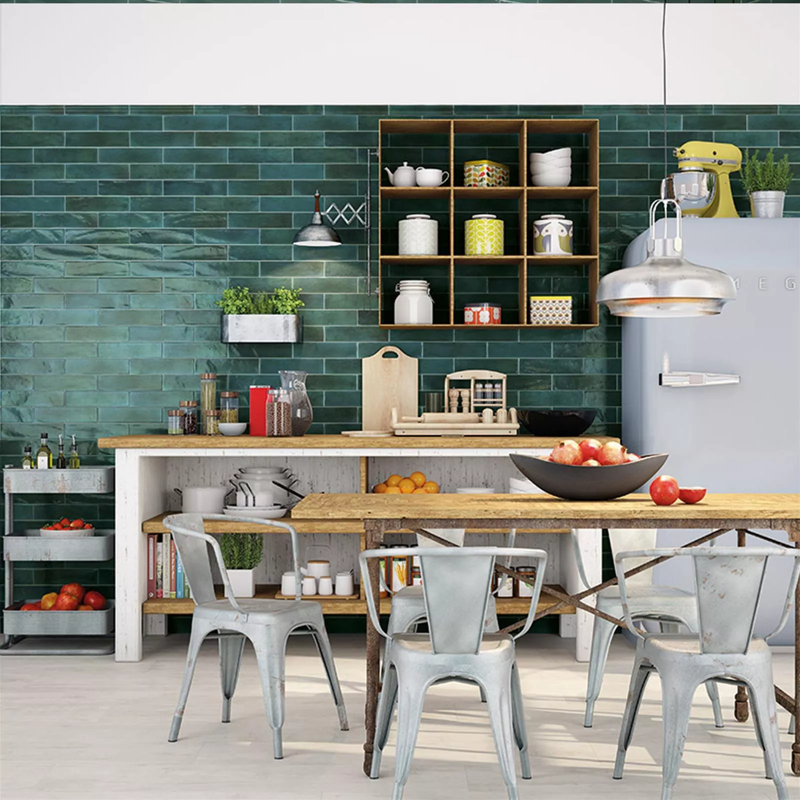 Vægfliser Conway Bølgepap 7,5x30cm Smaragdgrøn
