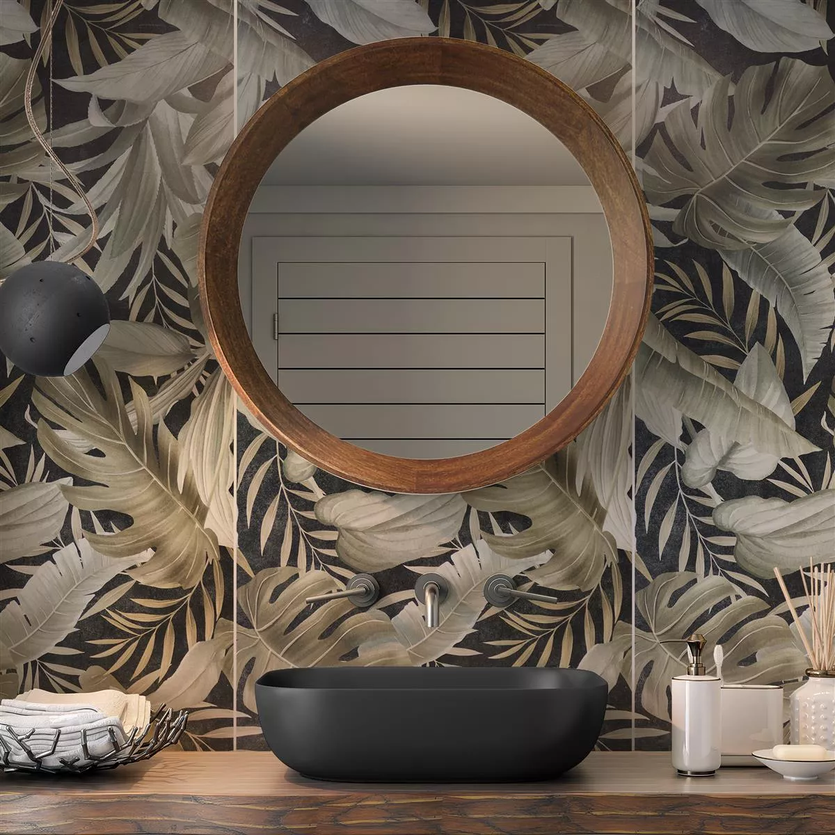Bring et strejf af eksotisme ind i dit hjem med Honolulu Floral vægfliser i 60x120 cm sort. Disse glaserede og rektificerede stentøjsfliser af porcelæn imponerer med deres matte overflade og elegante blomsterlook. Hver flise måler 60x120cm og er 10mm tyk.