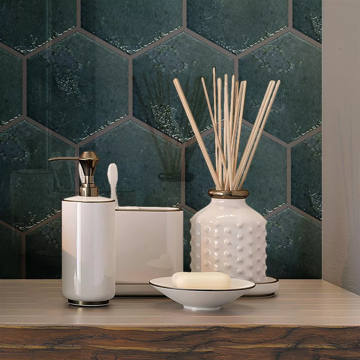 Med en tykkelse på 7 mm er flisen robust og ideel til forskellige anvendelsesområder som badeværelser, brusere, køkkener og stuer. Det sekskantede format (13 x 15 cm) giver mulighed for kreativt design og sikrer et stilfuldt, geometrisk design.