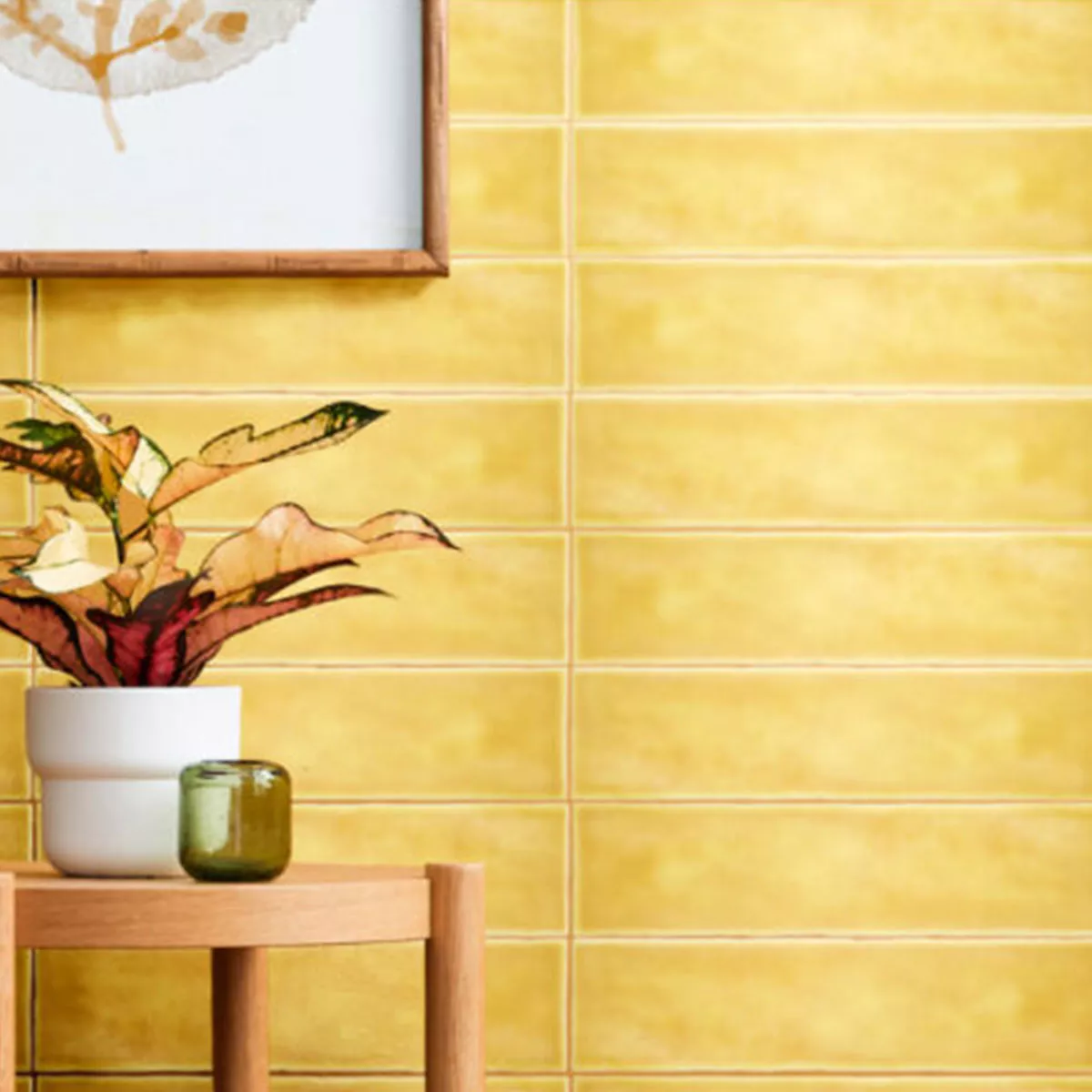 Bring en frisk atmosfære ind i dine rum med vores Lugo vægfliser i bølgegul. Disse glaserede rektangulære fliser, der måler 7,5x30 cm og 8,4 mm tykke, giver dine vægge et unikt vintage-look. Den bølgede, blanke gule overflade skaber en levende og tiltalende æstetik.