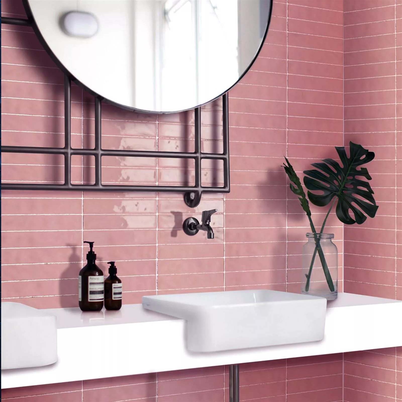 Vægfliser Montreal Bølgepap Rosa 5x25cm