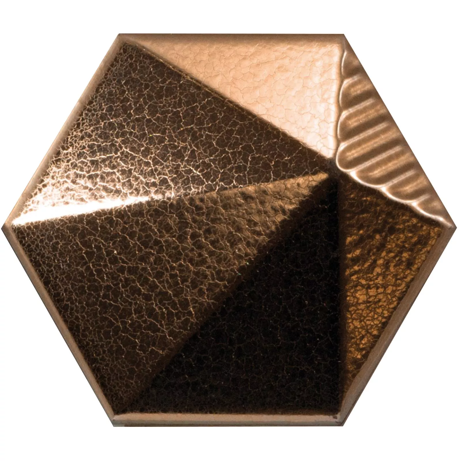 Vægfliser Rockford 3D Hexagon 12,4x10,7cm Kobber