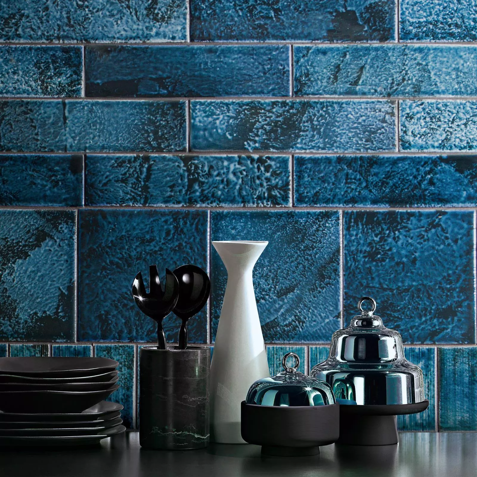 Vægfliser Vanroy Bølgepap 6x24cm Blå