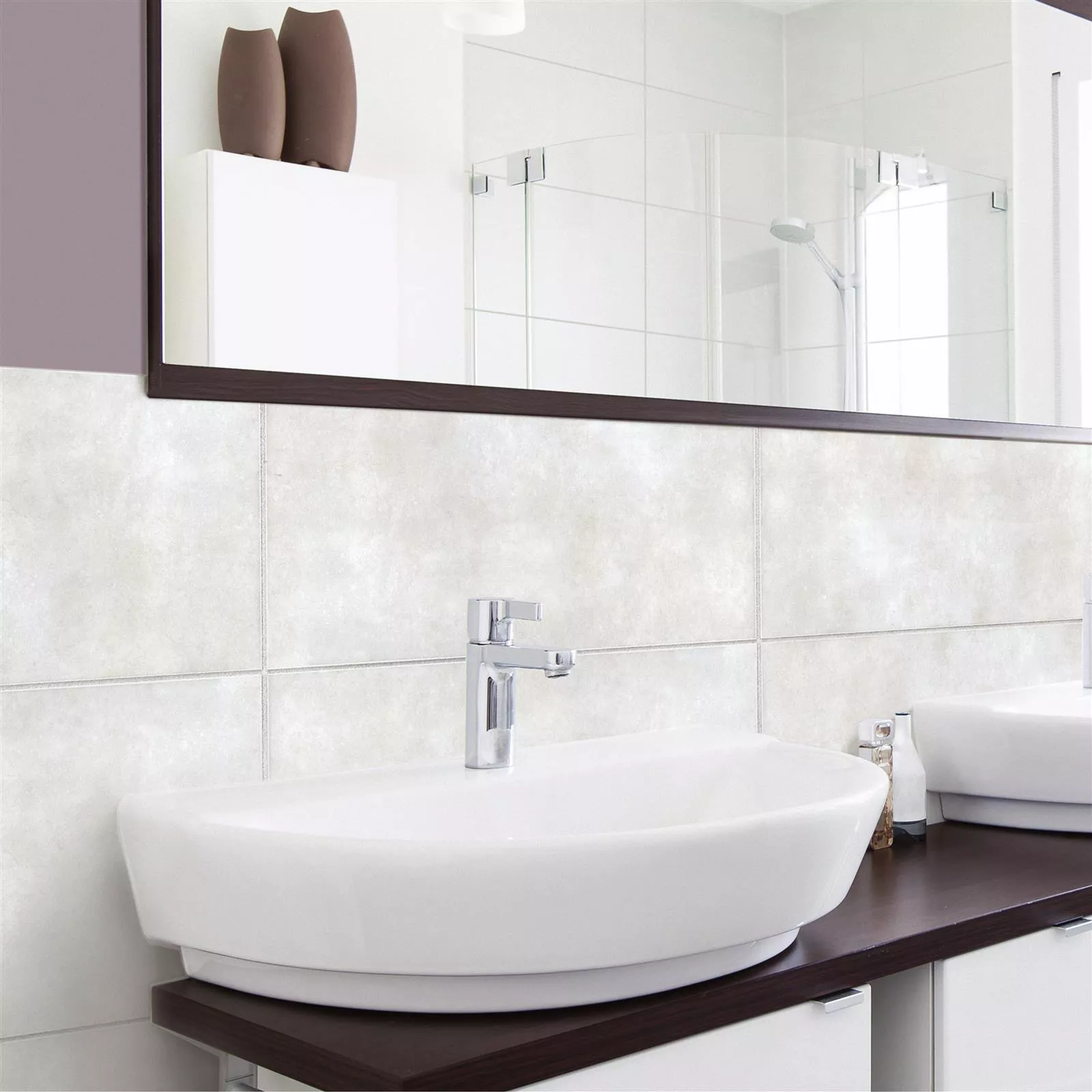 Viktoria halvblanke vægfliser fås i beigegrå og hvidgrå. Overfladedesignet er mat og blankt. Flisens materiale er grundlæggende lertøj, som er robust, men bør håndteres med forsigtighed.