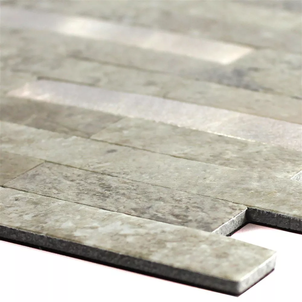 Fliserne er lavet af aluminium og er grønne og brune i farven. Mosaikflisernes mangfoldighed sikrer en smuk individualitet.